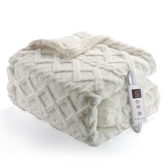 GARVEE Heated Throw Blanket - Thick Tufted Sherpa Electric Blanket Throw with 10 Heating Levels and 10 Time Settings, ETL Certified Machine Washable Fast Heating Blanket Throw 50"×60", off White